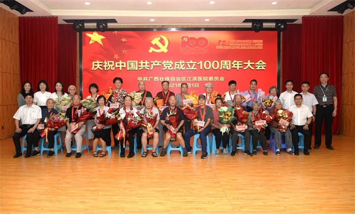 7月1日下午,自治区江滨医院在多功能厅召开庆祝中国共产党成立100周年大会。大会顺利完成上党课,道德讲堂,宣读表彰决定,颁发“光荣在党50年”纪念章,为先进基层党组织、优秀党务工作者和优秀共产党员、红色歌曲合唱比赛颁奖等议程。院领导韦辉、胡才友、马金玉、张海英、覃宇奇、李昌柳、雷霄云、梁新佳出席大会。会议由院党委副书记马金玉主持。