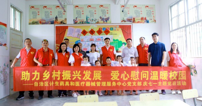 在举国上下隆重庆祝中国共产党成立100周年,如火如荼地开展“感党恩、跟党走,我为群众办实事”活动之际,6月28日,自治区计划生育药具和医疗器械管理服务中心党支部带着深情厚谊,来到龙胜县乐江乡凉坪村开展“助力乡村振兴发展 爱心慰问温暖校园”庆七一主题党日活动,深入村幼儿园进行了慰问,在村委会举行了捐赠仪式和座谈会活动。