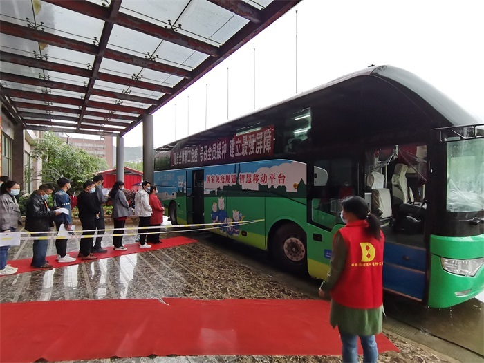 5月20日上午,一辆车身印着“国家免疫规划 智慧移动平台”12个大字的新冠疫苗移动接种车驶入广西桂林市全州县城西工业园区赐佳鞋业厂区,由桂林医学院附属医院紧急组建的自治区级疫苗接种及医疗救治机动队首站来到这里,为该厂1000余名工人提供疫苗接种服务。